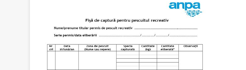 Fișa de captură, parte integrantă a permisului Anpa 2019 pentru ape contractate, se trimite la Asociaţia de pescari care a eliberat permisul dumneavoastră.