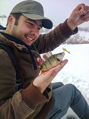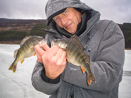 Când dau de ei, am o singură preocupare – stimularea concurenţei între indivizi. Ăsta e cel mai important lucru de ţinut minte când pescuiești la biban, pe gheaţă sau nu. Când peștii nu mai reacţionează la agresivitate, schimb registrul. Joc năluca mai lent și o prezint pe toate palierele de adâncime. Pentru un plus de savoare, aditivez întotdeauna mormâșca / dandineta cu larve și atractant.